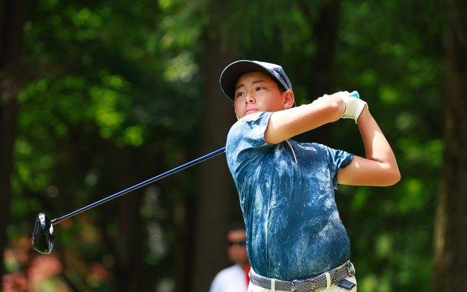 予選を通過すれば、13歳18日で最年少予選通過記録となった福井誠ノ介くん(アマ)。初日に4アンダーを出したものの、2日目に2つスコアを落とし、予選落ちとなった。©Yoshitaka Watanabe