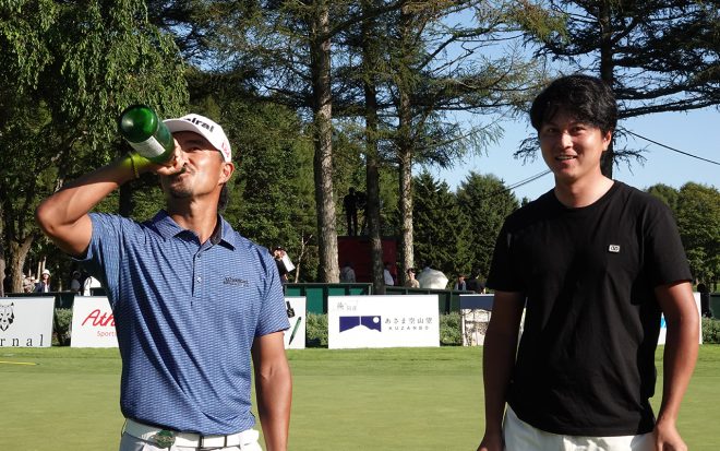 キャディとして小平の勝利に貢献した、市原弘章(右)。市原建彦の弟で、プロゴルファーだ。©Eiko Oizumi