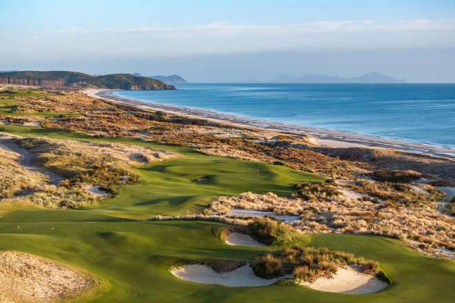 16ホールからは太平洋を望み、自然の砂丘の上に敷かれた硬く速いフェスキューが特徴だ。