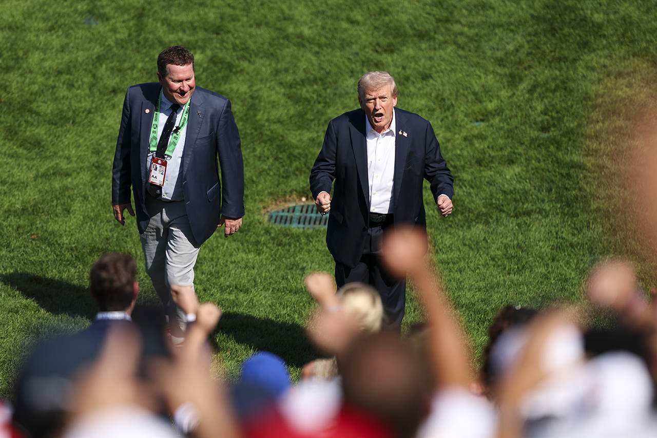 会場では、1番ティーの後ろを陣取り、入場する選手達や欧米両キャプテンと挨拶を交わしたトランプ氏。今年の7月、トランプ氏は大統領令を通じて「大統領スポーツ・フィットネス・栄養評議会」の再建を宣言し、その議長に任命したブライソン・デシャンボーとも握手を交わして激励していた。欧州キャプテンのルーク・ドナルドは、「現職の大統領が観戦に来たいというのは、ライダーカップの大きさを示すもの。敬意の表れと受け止めるべきだろう。トランプ大統領はゴルフの大ファンで、選手達とも面識がある。多忙な中、時間を割いて来場すること自体が、イベントへの敬意だと思う」と語った。