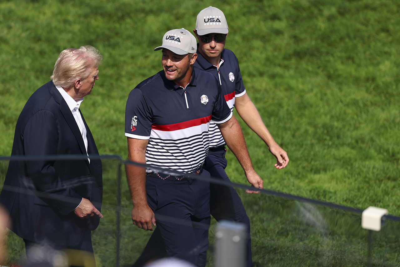 会場では、1番ティーの後ろを陣取り、入場する選手達や欧米両キャプテンと挨拶を交わしたトランプ氏。今年の7月、トランプ氏は大統領令を通じて「大統領スポーツ・フィットネス・栄養評議会」の再建を宣言し、その議長に任命したブライソン・デシャンボーとも握手を交わして激励していた。欧州キャプテンのルーク・ドナルドは、「現職の大統領が観戦に来たいというのは、ライダーカップの大きさを示すもの。敬意の表れと受け止めるべきだろう。トランプ大統領はゴルフの大ファンで、選手達とも面識がある。多忙な中、時間を割いて来場すること自体が、イベントへの敬意だと思う」と語った。